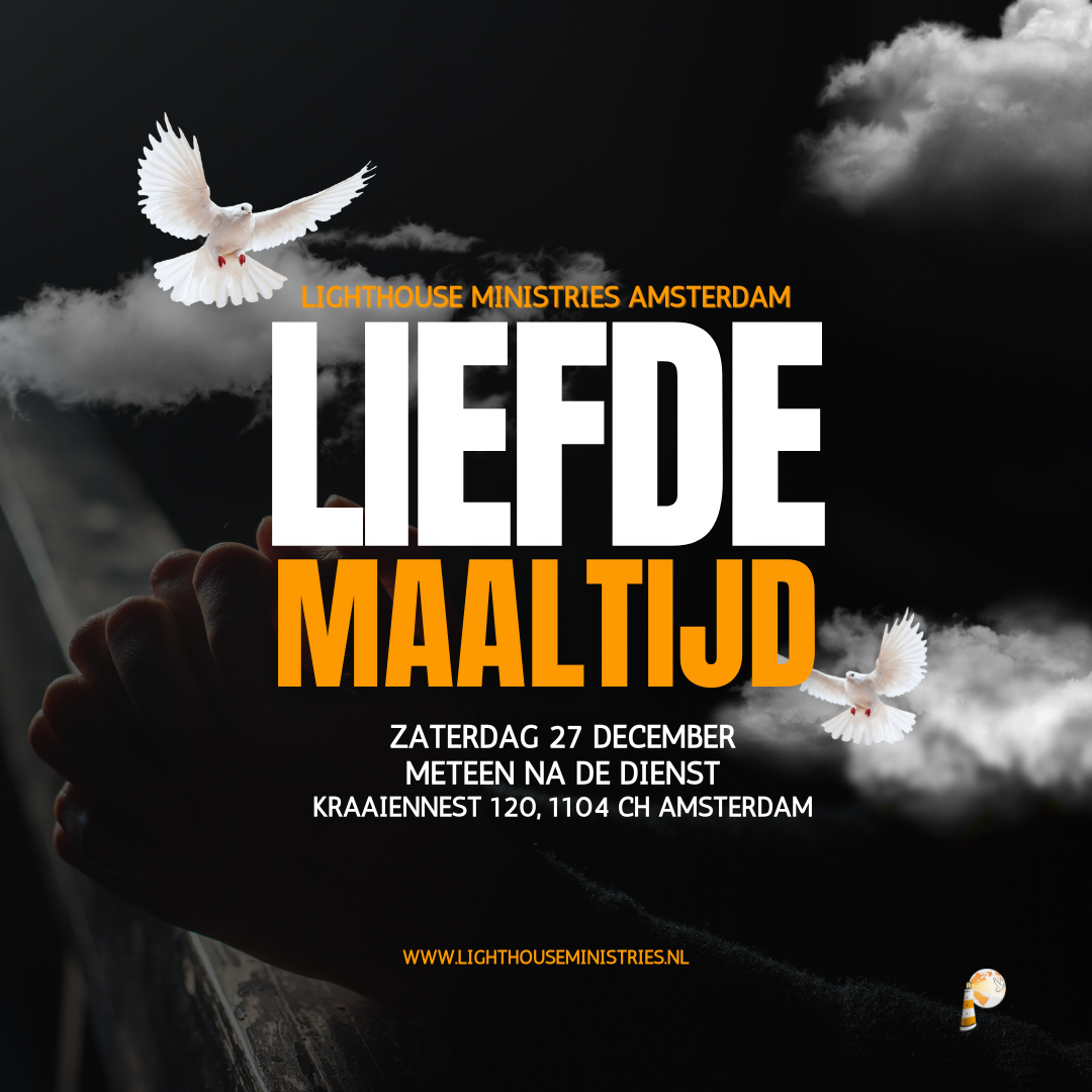 Wij als gemeente organiseren een liefdemaaltijd voor ons "Geestelijk Gezin". We hebben de dienst als gebruikelijk, maar zullen daarna afsluiten met een lekkere maaltijd, gezelligheid en vreugde. Komt u ook? Meld u aan!